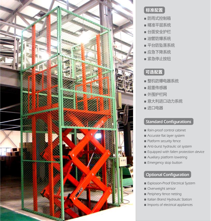 固定式液壓升降貨梯是用于貨物運送的專業(yè)液壓升降臺,主要應用于倉庫、車庫、車間等各種工作層間上下貨物輸送,具有廣泛的適用性,承載量大、升降安全平穩(wěn),安裝維護簡單方便,是經濟實用的理想貨物輸送設備